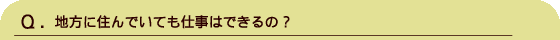 A.お仕事の打診や打ち合わせはメールで行いますし、お仕事は全てインターネットをとサーバーを通して行います。貴方のPCがあるところ全てが職場に変身します。だから、組織や地域に縛られず、自由なライフスタイルで能力や技術を発揮してくださいね!